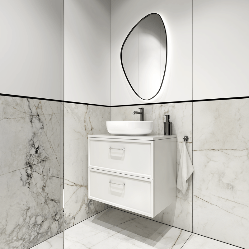 Meble łazienkowe łączą w sobie design z użytecznością. Lakierowane powierzchnie są odporne na zachlapania. Meble są przystosowane do montażu umywalek nablatowych. Nasze meble zostały starannie zaprojektowane przez architektów, odpowiednie proporcje i wymiary pozwolą na zastosowaniu naszych modeli w większości standardowych pomieszczeń.
