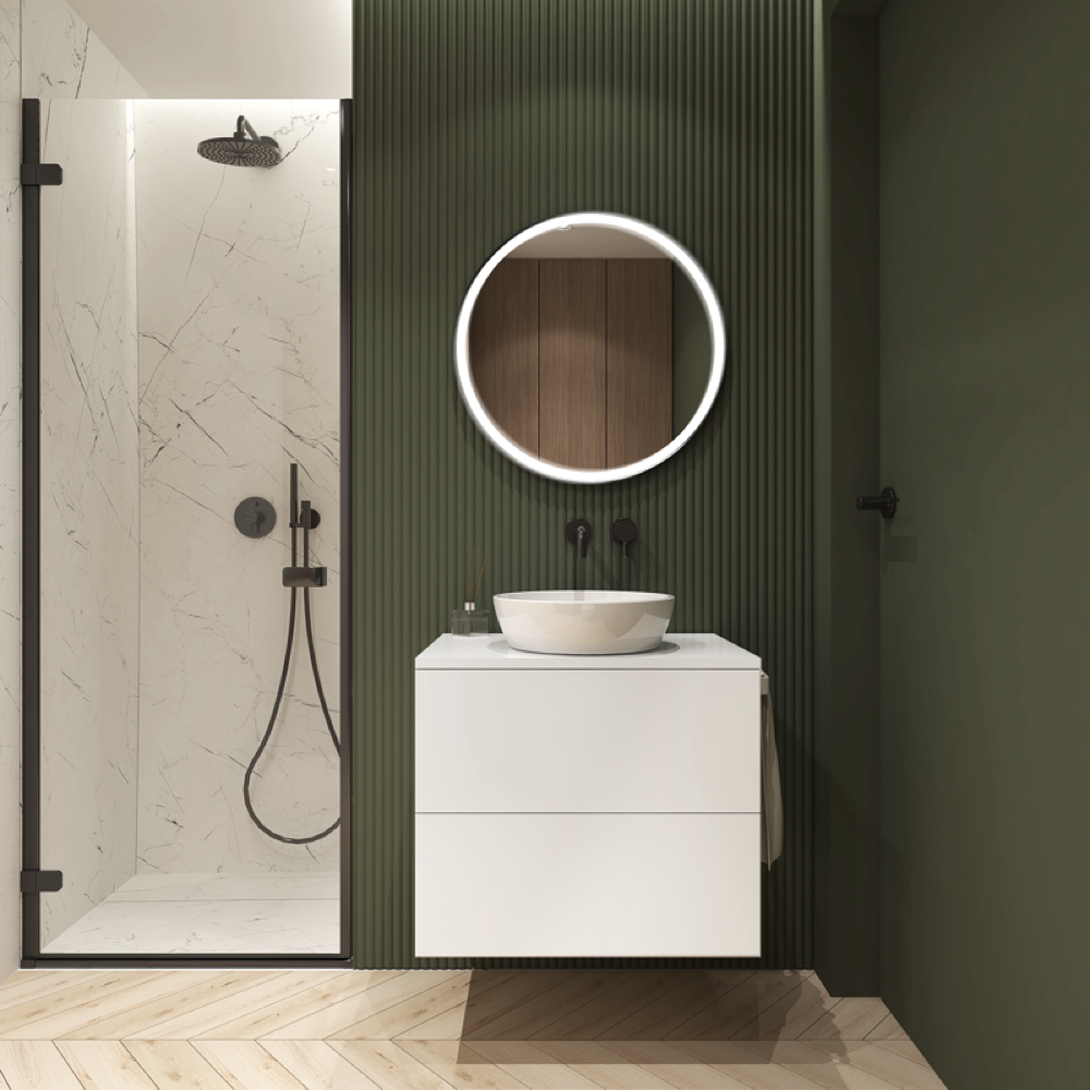 Meble łazienkowe łączą w sobie design z użytecznością. Lakierowane powierzchnie są odporne na zachlapania. Meble są przystosowane do montażu umywalek nablatowych. Nasze meble zostały starannie zaprojektowane przez architektów, odpowiednie proporcje i wymiary pozwolą na zastosowaniu naszych modeli w większości standardowych pomieszczeń.